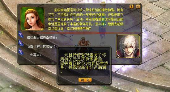 在卡诺萨城中找到元旦特使爱玛,凭借元旦庆典邀请函,你将获得1枚超级幸运星——超级幸运星可用来参与“幸运转转转”活动。如果你不小心弄丢了邀请函也没关系,只要重新上线就可以获得了。