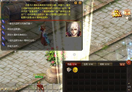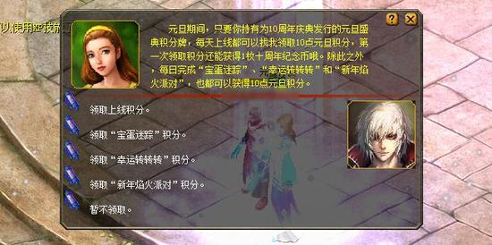 此外,活动期间第一次领取元旦积分,还可以获得1枚十周年纪念币。 参加元旦、春节、元宵节、情人节、龙抬头等节日活动都能获得十周年纪念币,纪念币可兑换绝版十周年坐骑! |