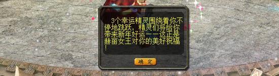 | 任务奖励 | ![]() 超级幸运星 说明:为元旦盛典特地打造的幸运星,获得此物必将在新的一年里好运连连。可用来参与“幸运转转转”活动。 ![]() 元旦好运礼包 说明:随着璀璨的新年焰火从天而降的礼包,打开有可能获得超级幸运星、晶蓝魔锤、炫金魔锤、新年焰火礼包等礼物之一。点击右键打开。 ![]() 焰火精灵礼袋 说明:随着焰火精灵放射出的魔力火光而降临的礼包,打开将有可能获得包括水晶花语礼包、幻化幸运草[赠]等礼物之一。点击右键打开。