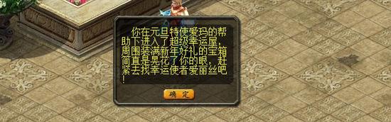 在元旦特使爱玛的帮助下你进入了超级幸运屋,周围装满新年好礼的宝箱简直是晃花了你的眼,赶紧去找幸运使者爱丽丝吧! ![]()