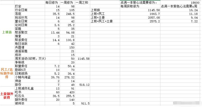 点满一个8重紫心法大约需要1亿8千多万的修为,那么对于上班族,或者是游戏民工,或者是土豪这个需要花多少时间才能点满呢。