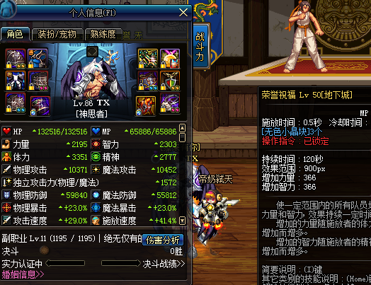 荣誉/武器/天使/黎明祝福均为(体精/840+1)*技能面板=实际加成
