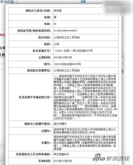 易竞技编辑在12月30日赫然发现,在中国执行信息公开网搜索小智的本名杨丰智时,他与斗鱼TV的纠纷执行问题让他进入了政府的失信人名单。