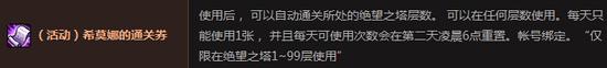 活动期间,勇士们每天进入绝望之塔也可领取一张【[活动]希莫娜的通关券】。每个账号活动期间每天可以领取一次。
