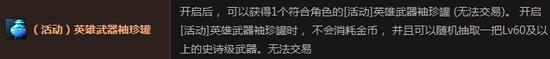 活动期间,勇士们可以在希莫娜的商店处购买【[活动]英雄武器袖珍罐】,每个账号仅限购买一次~