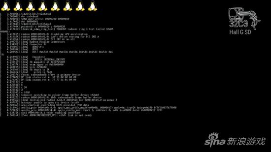 成功进入了Linux系统,上面的甜甜圈图标是Fail0verflow制作的说明PPT