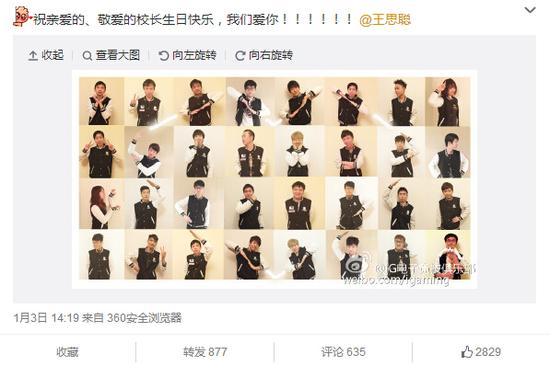 IG电子竞技俱乐部更是所有人摆成心形为王校长庆生……