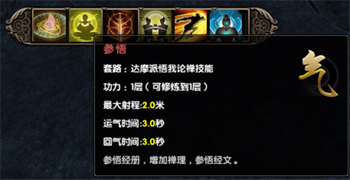 随后使用场景中的临时技能“参悟”,便可收集“禅理”。