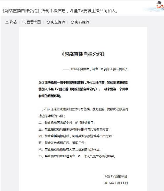 斗鱼TV才刚刚发布关于《网络直播自律公约》,如果直播“啪啪啪”视频为真,斗鱼TV恐怕还需采取进一步整顿措施了。