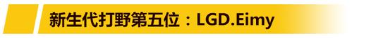 本次转会期,Eimy由UP转至LGD战队,再一次与老队友韦神并肩作战,一对对彼此风格熟悉的中野组合会使Eimy更快地融入团队中。不同于 TBQ敢打敢拼的风格,Eimy更喜欢支援和反蹲来帮助队友,而对于前期喜欢刷线的韦神来说,这样的打野可能更加适合他。新赛季的LGD还引入了S5冠军 上单Marin,这样的一支队伍相对于去年的LGD更为完善、也更为可怕了,Eimy作为这支LGD的打野,能否做好一个串联的工作,也是令人所期待的 的。