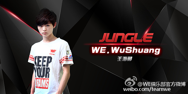 无双在加入WE战队之前是一个非常有人气的游戏主播,曾经在ACFUN战队担任打野位置。加入WE后,他的第一战就是NEST全国电子竞技大赛。在 Spirit离队后,WE的打野位置的归属是粉丝们最关注的事。在定下无双后,有看好的、也有质疑的,但最终,无双用“NEST冠军”向WE的粉丝们交上 了一张满意的答卷,也证明了自己的实力。