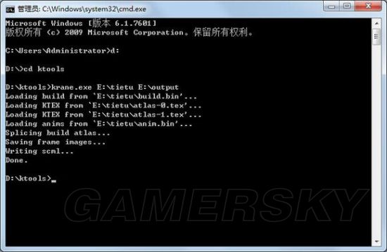 然后下面输入,krane.exe E:\tie E:\output (启动krane程序。目标文件夹“tietu”,输出文件夹“output”)