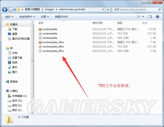 然后进入bigportraits以及images文件夹以及子文件夹里。把TEX格式的文件全部删,保留同名的PNG格式文件。如果没有请用TEX软件打开TEX文件保存一张出来。