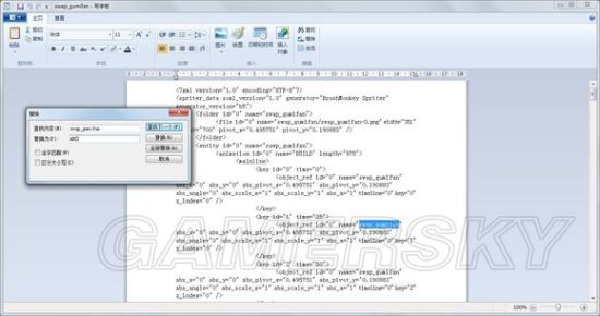 千年狐的扇子是swap_gumifan,然后你想你的道具叫ABC。那么。选择文本里的替换选项。然后全部替换。