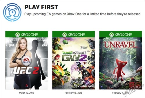 EA宣布,《UFC2》、《植物大战僵尸:花园战争2》和《解开》三款2016年春季发售的游戏将加入提前体验计划。