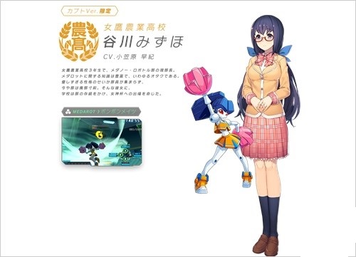 《甲胄版》的主人公,是在女鹰农业高校(通称“メダノー”)上学的一年级学生。她拥有开朗温柔的性格,总是影响着周围的人。