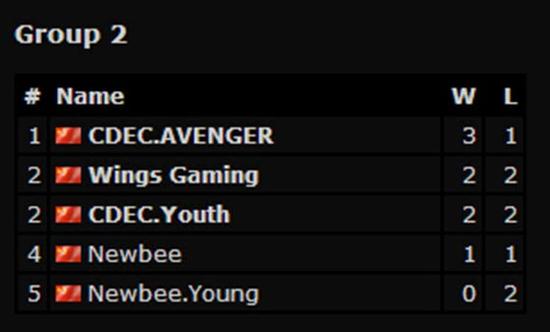 第二小组今天对决场次不多,令人感到惊讶的是,从CDEC联赛中选拔组建的CDEC.A队先是逼平了辉夜杯亚军CDEC.Y,随后又击败在WCA上爆冷战胜Secret的Wings,一胜一平的成绩也让他们暂居小组头名。