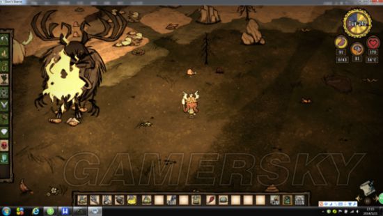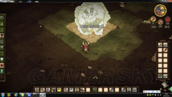 另外补充一种不用冰杖的诱杀方式,夏季boss喜欢吃灰烬,只要没打他,看到灰烬会不顾一切地去吃,于是可以先扔下炸药,然后在炸药附近放几堆灰烬,注意不要堆叠,堆叠的它一次就吸光了,拿出灰烬,按住ctrl,一个一个放地上