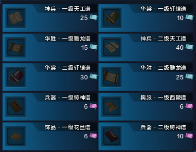 7、装备制作顺序建议:首饰>各职业三属性防具>四件防具>主副武器>防具>暗器