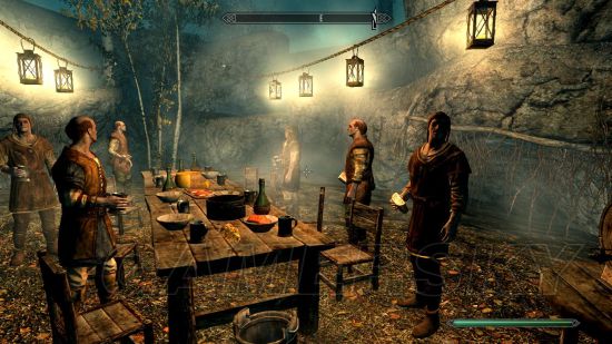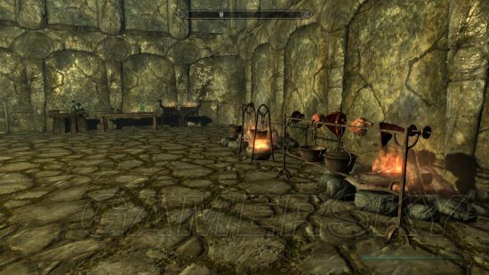 在一个满是石头的地方摆着烹饪罐- -怎么有一种怪怪的感觉