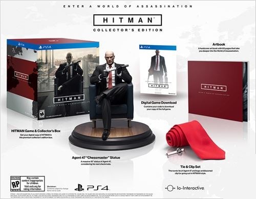本作的收藏版将于游戏发售日当天在北美地区开卖,其中包括游戏下载码、十英寸大小的手办、特殊铁盒包装、精装版设定集、红领带以及领带夹,目前收藏版已经开放预订,感兴趣的玩家可以点击这里查看(PS4版、Xbox One版)。不过对于喜欢收藏实体版游戏玩家来说就可以先延缓预订,因为本作的实体版上市日期为2016年末。