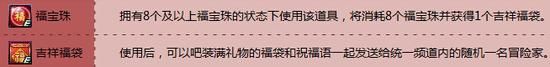 2【福宝珠】、只能发送的【吉祥福袋】为无法交易且将于每日凌晨6:00统一删除,勇士们收到的【吉祥福袋】为账号绑定且将于2016年1月26日更新维护前删除;