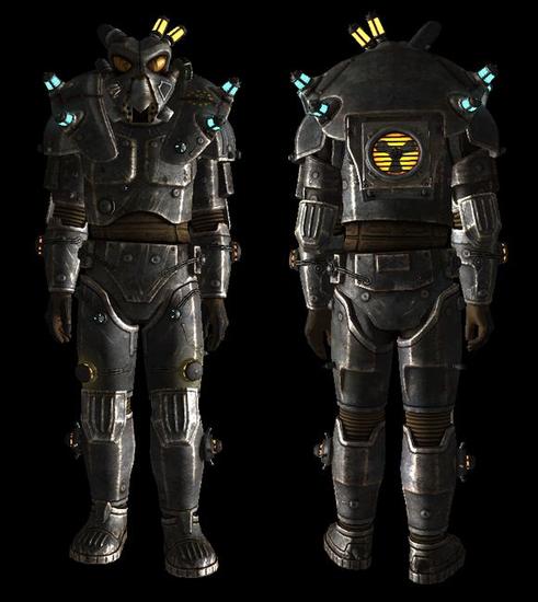 这是在新维加斯出现的动力甲,不过这个由于性能太优越,吹的太不靠谱,在后续的DLC中也是遭砍属性,而这样的一个终极动力甲恐怕还要看DLC的时间线,况且这个本身秘密研究且曾被搁浅的动力甲能在辐射4中出现的几率几乎为0