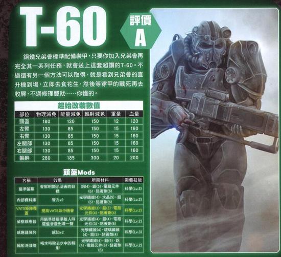 不过新作《辐射4》并没有在动力装甲的型号上大作文章,仅加入了一款T-60B撑了撑场面。而目前版本最好装甲仍是老玩家熟知的X01(英克雷),相信在DLC中除了各大分支势力的加入,新的动力甲也会加入,根据资料显示,辐射系列废土上唯一具有研发动力甲能力的只有英克雷(战略版中的钢铁兄弟会芝加哥分会勉强算在内,不过都是基于 T-51B改装而来)。所以下文中的动力甲都是英克雷的产物。由于辐射4中可以捡到X01这样的先进动力甲,所以基于此,按照出现的可能小编进行了排序: