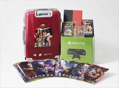 台湾微软宣布将与日本光荣特库摩合作,共同推出限量Xbox One《三国志13 特典同捆组》,于1月28日(周四)在台上市,估计零售价NT$14,980。《三国志13 特典同捆组》将有为三国志30周年庆独家打造的限量纪念款《三国志13》韬略行李箱,每组内含一台Xbox One主机(内建500GB硬碟、Blu-ray播放机与内建Wi-Fi无线网路)、一支标准版Xbox One无线控制器、通话耳机、及《三国志13》特典中文版,包含:《三国志13》中文版游戏光碟、KOU SHIBUSAWA秘传攻略法以及武将画册、原声带音乐光碟、特制桌历、15种丰富的武将特制资料夹。