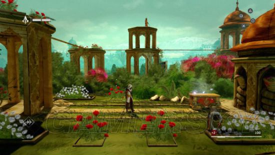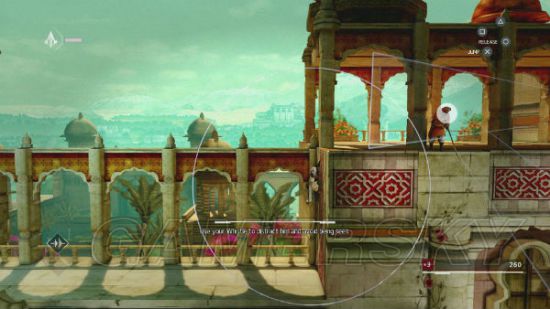 6。从庭院上走过独木桥先到左边收集第四个碎片,然后往右到庭院下。此时按住L1开启口哨然后用右摇杆控制范围,再按R1吹口哨引起敌人注意。敌人一回头就能往右了。