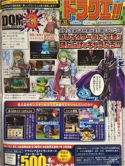 Square Enix公司所推出的3DS新作《勇者斗恶龙怪兽篇 Joker3》将于2016年3月24日发售,日前本作最新的杂志速报截图已经出炉,本次的速报图主要介绍了游戏中的部分重要登场角色,他们和本作的主人公都有着重要的联系。