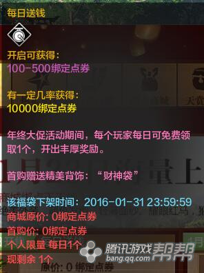 活动一:23-31号期间,每日上线,领绑定点券,可以说是福利。