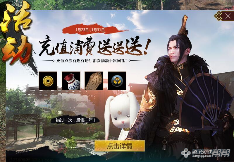 活动二:充值加消费,目测奖励北辰,钥匙小兔,碎银,修为,群侠令以及五蕴。