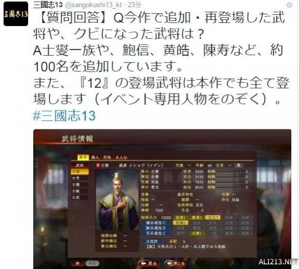 答:士燮家族、鲍信、黄皓、陈寿等人,大约追加了100人。此外三国志12中登场的武将这次全都有。(除了专用的事件人物)