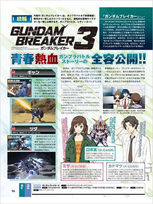 预计在2016年3月3日发售的《高达破坏者3》是操纵钢普拉进行战斗的动作类游戏,让玩家在模型世界内进行战斗,上一作2代剧情是原创的战争剧,不过本作3的剧情则一转而变,转变成了青春热血钢普拉对战剧情,玩家扮演主人公,为了复苏商店街,而展开各式各样的钢普拉对战活动。