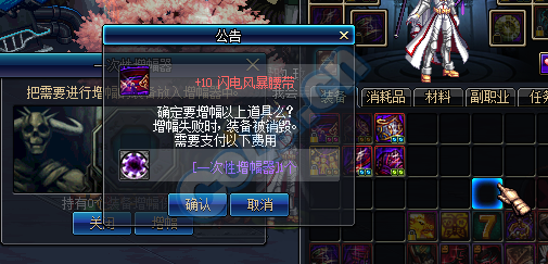 然后就是86级的护肩了,放进去后提示请确认等级。而增幅器的说明上面也已经说过了,可以增幅目前所有等级的装备,于是这波又该怪TX的临时工了。