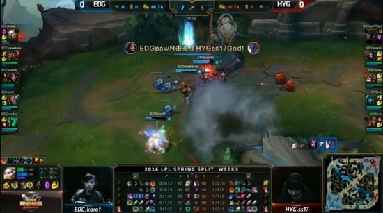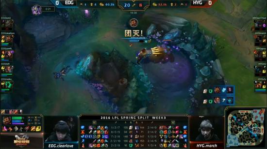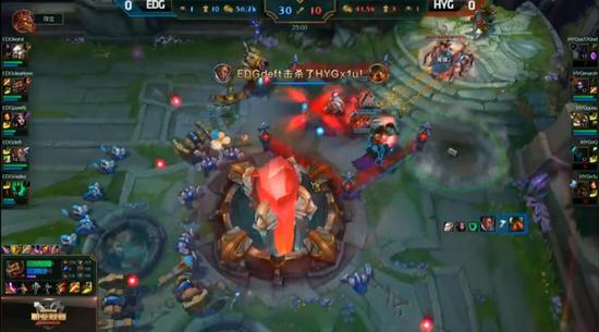 19分钟双方再次发生团战,EDG又团灭了HYG,不管是团队实力还是前期积累的优势,EDG都已经不知道怎么输了。