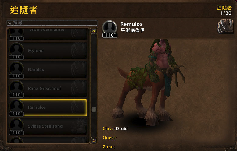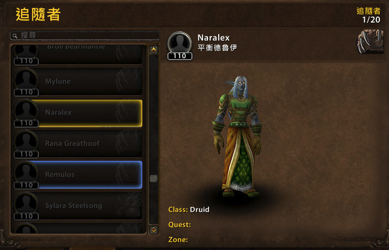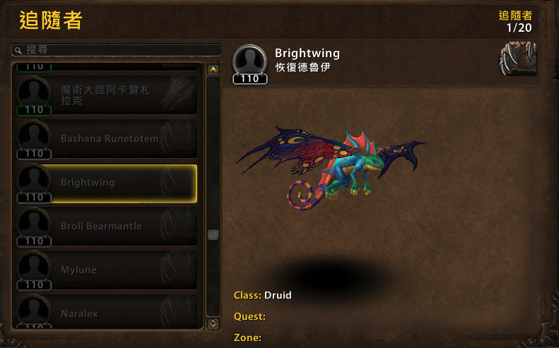 Build 20994新增德鲁伊追随者,之前版本其他职业追随者请参考:《各职业专精追随者一览》