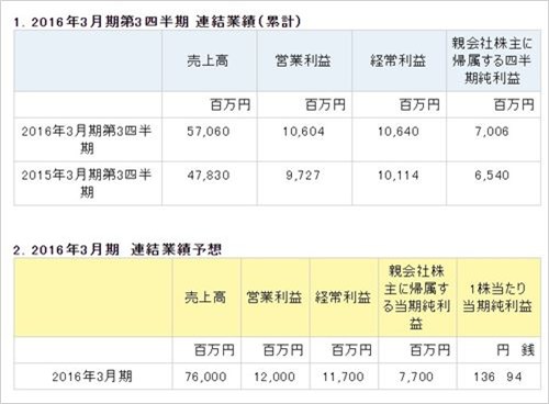 1月28日,CAPCOM公开了2015年4月1日到2015年12月31日的2016年3月期第三四半期连结业绩。在这段时间内,CAPCOM的营收达到了570亿6000万日元,同比增长19.3%。营业利益106亿400万日元,同比增长9%,经常利益106亿4000万日元,同比增长5.2%,纯利益70亿600万日元,同比增长7.1%。CAPCOM预计整个财年的销售额将达到760亿日元,纯利益将达到77亿日元。《怪物猎人X》的超预期表现是主要原因。