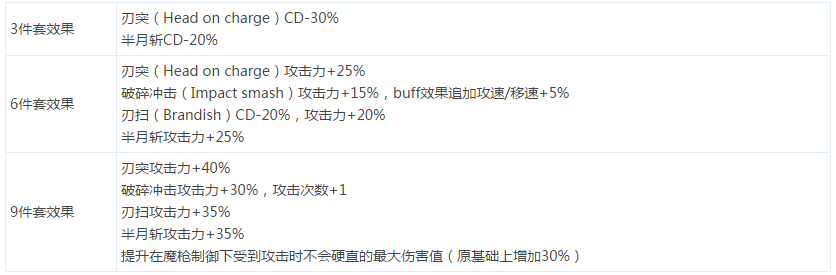 恶性循环套(Vicious Spiral):无谓(bore),疾风刃斩(Blade storm),魔枪解放,集中强化这些技能的套装。