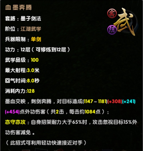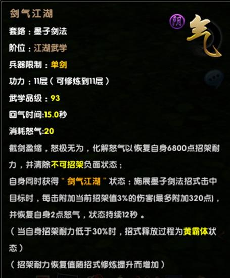 今日,一位侠士便分享了高层墨子剑法的技能面板,让我们一起来看看吧!