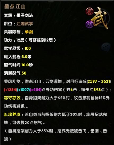 墨剑如钜傲点江山 九阴真经高层墨子剑法面板分享
