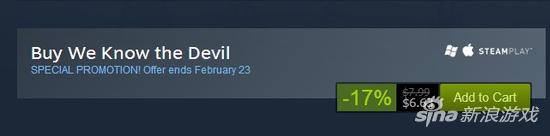 目前该游戏在steam上的价格为7.99美元,但是有-17%的折扣,打折后的价格为6.63美元,比起原本的售价6.66美元略低一些。