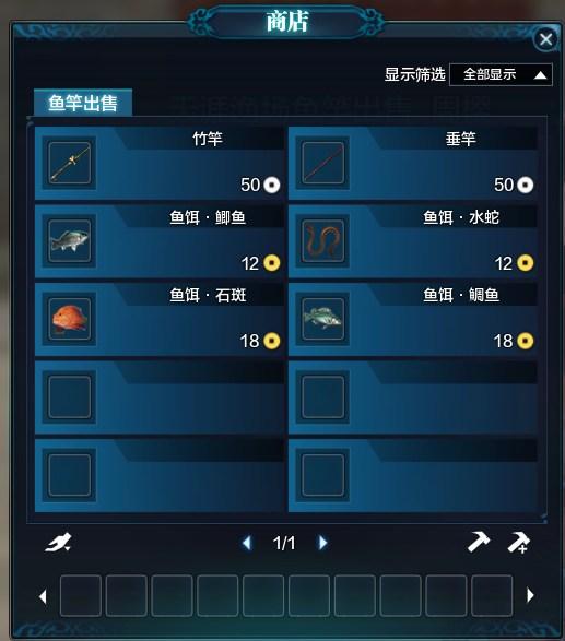 钓鱼群需要3样东西,鱼竿(NPC处买的鱼竿,50次使用,下杆的时候扣除次数)
