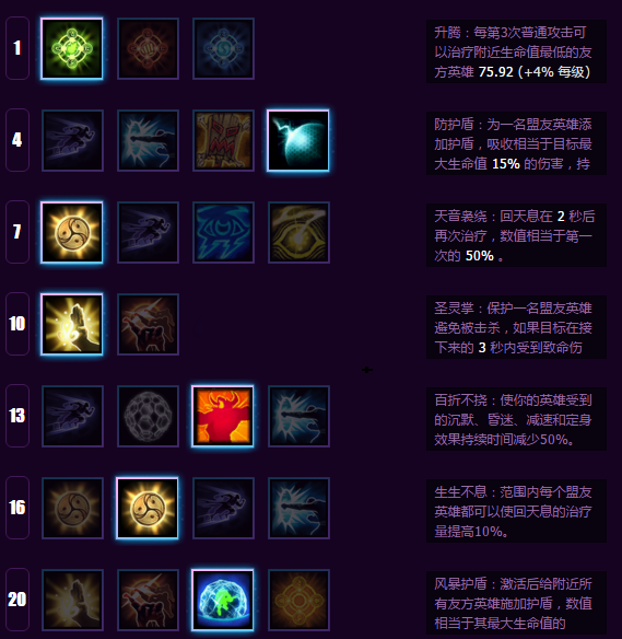 这套加点就属于比较传统的打法,毕竟武僧的奶量也是非常足的,前面加点不用多说,重点在16级和20级,一般情况下,小编我推荐16级点生生不息,毕竟10%的治疗量提高,并且是范围内的,大招的话,点风暴护盾肯定不会错,毕竟武僧也是要在前面扛下一小部分伤害的。