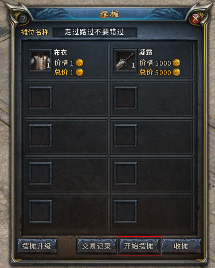 3、设定好摊位名称后,点击开始摆摊,就开始摆摊了。