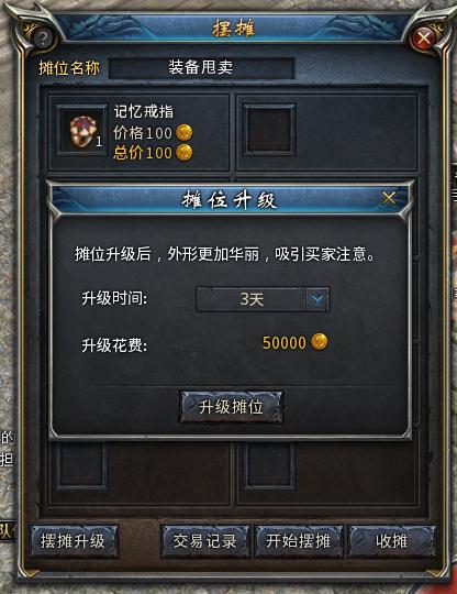 进入摆摊设置界面,点击“摆摊升级”,在弹出的“摊位升级”窗口设置好时间,点击“升级摊位”按钮,完成摊位升级。升级摊位需花费一些金币。
