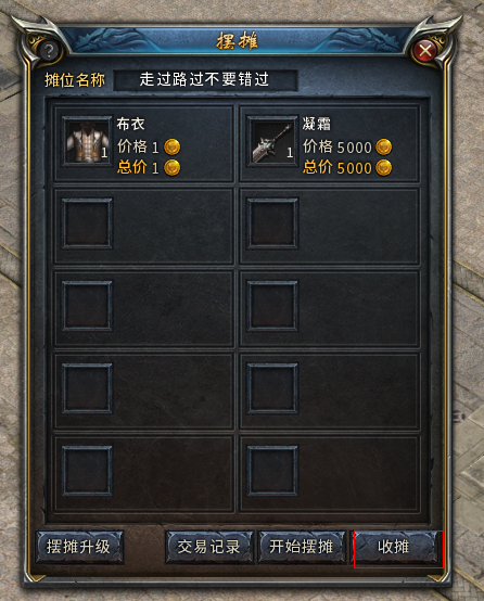 在摆摊设置界面,点击“收摊”按钮,结束摆摊。
