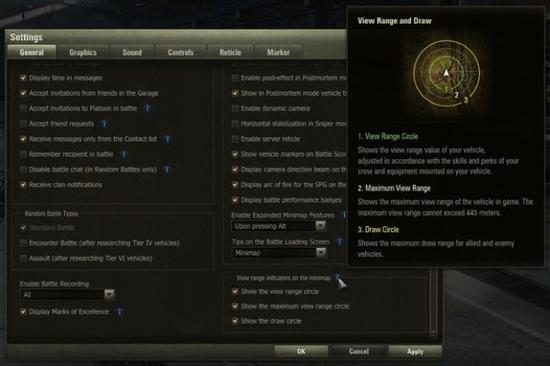 绿色圆圈 / 视野 :受你所驾驶车辆的车组技能、特长以及配件的影响。