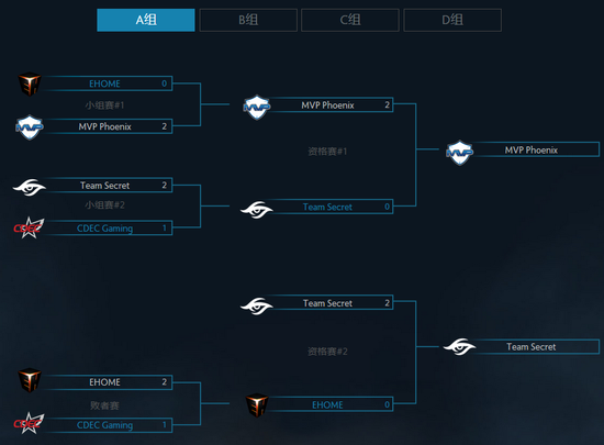 而EHOME与CDEC则遇到些“麻烦”。两队都在小组赛中失利,在败者赛中EHOME击败了CDEC战队,获得与Secret争夺第二名的资格。在最后的资格赛#2中Secret技高一筹,让EHOME落得第三名。